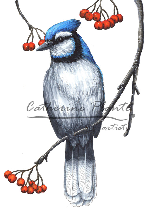 Carte de souhaits - Geai bleu et sorbier