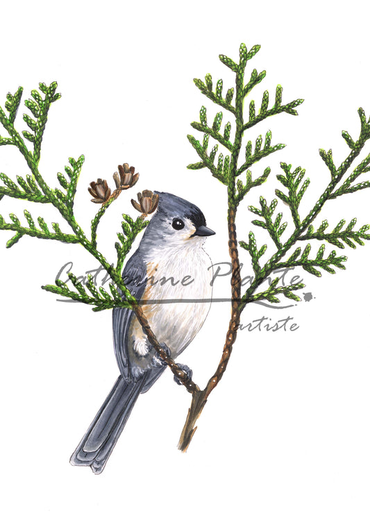 Carte de souhaits - Mésange bicolore et cèdre