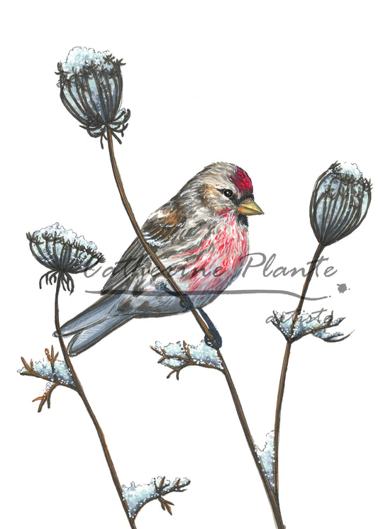 Carte de souhaits - Sizerin et délicatesse hivernale