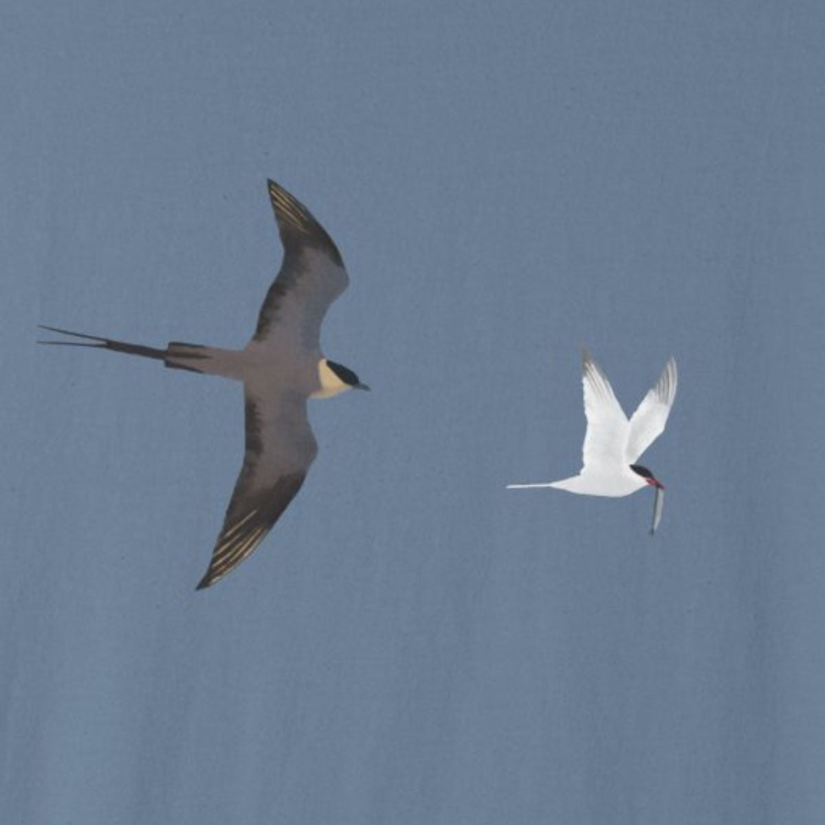 Affichez votre amour pour les oiseaux avec ce chandail à capuchon orné d’un Labbe à longue queue pourchassant une Sterne arctique.
