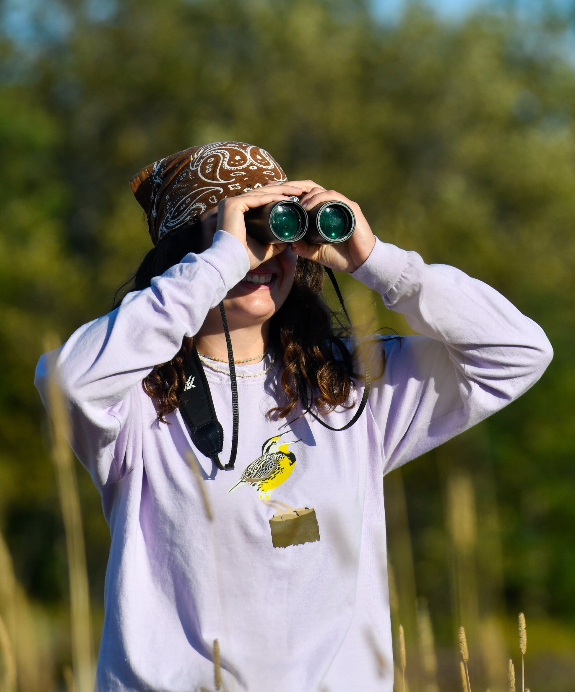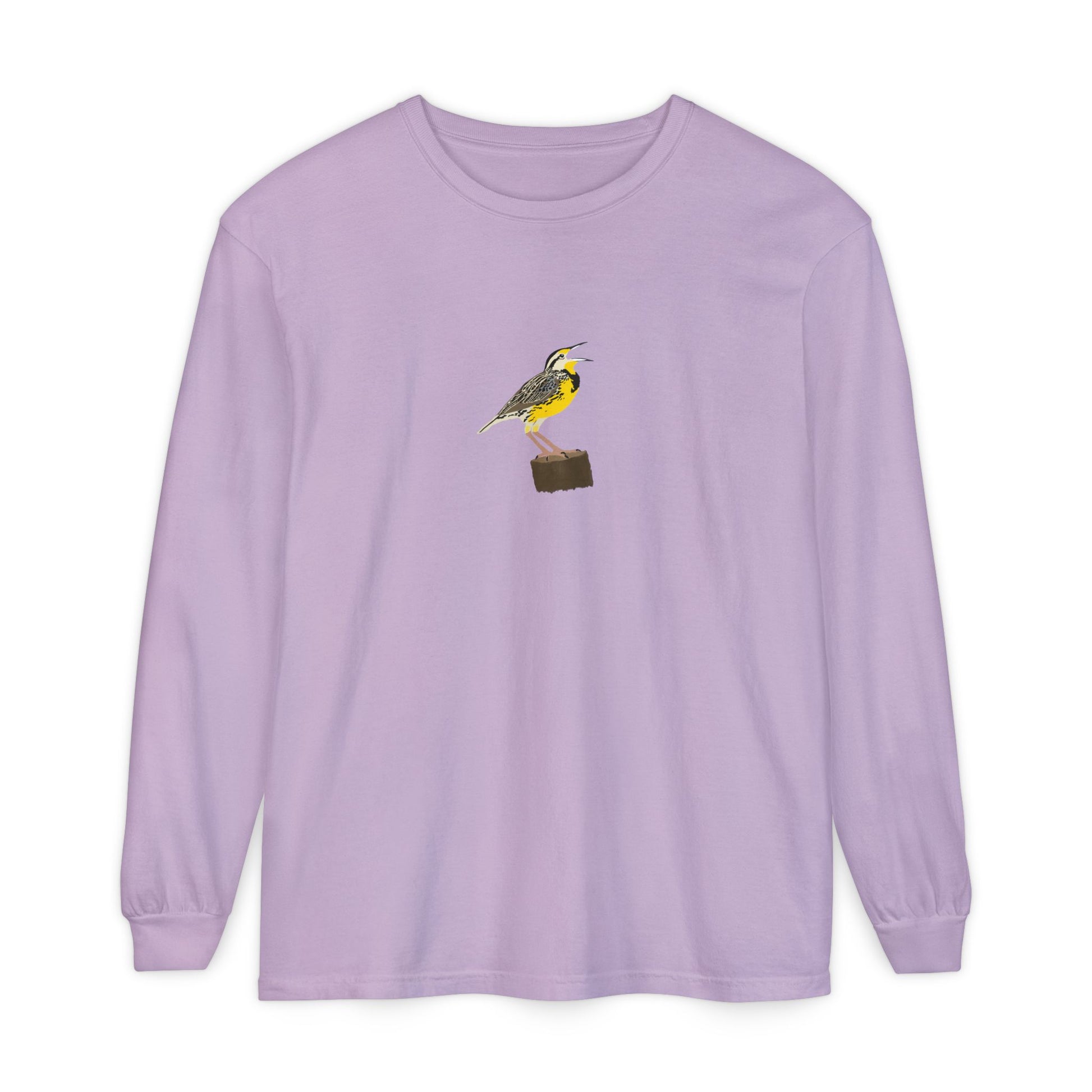 Affichez votre amour pour les oiseaux champêtres avec ce chandail à manches longues orné d’une Sturnelle des prés.
