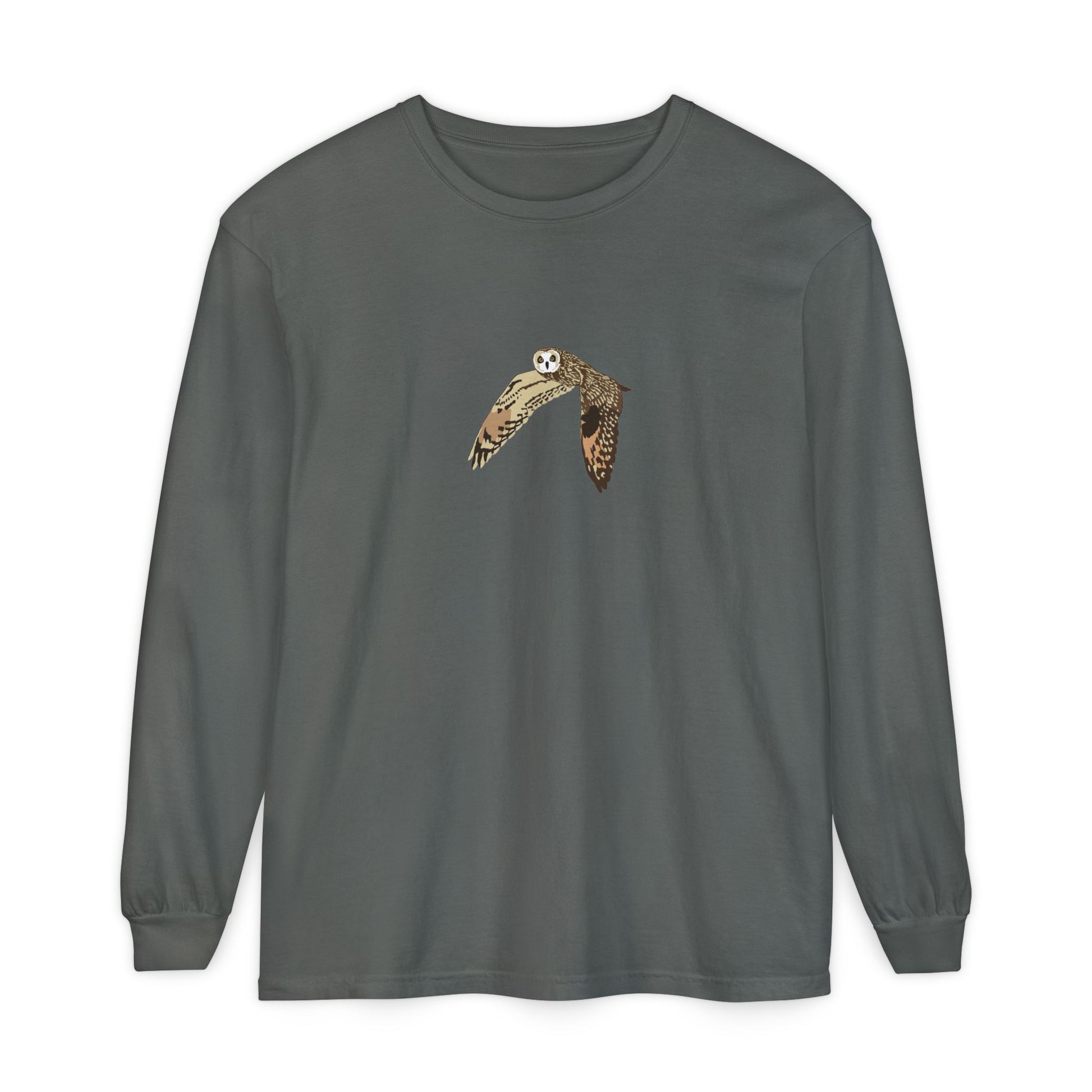 Affichez votre amour pour les oiseaux avec ce chandail à manches longues orné d'un Hibou des marais.